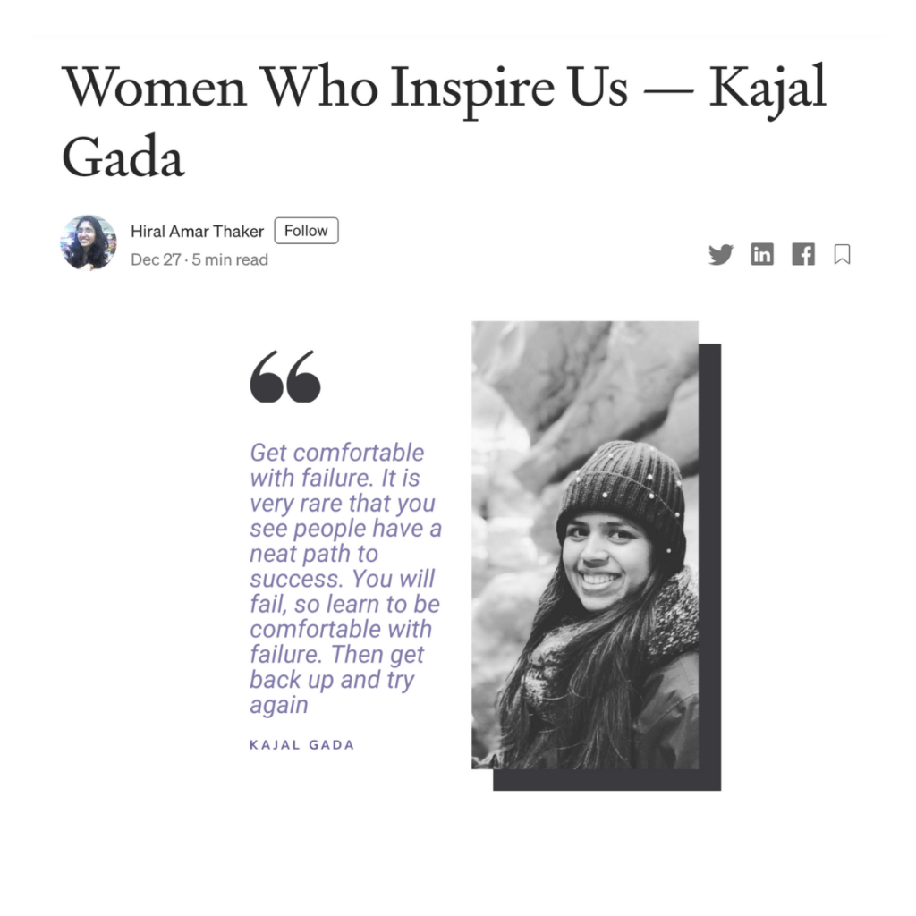 Link: https://medium.com/women-who-inspire-us/women-who-inspire-us-kajal-gada-f731c5560af3